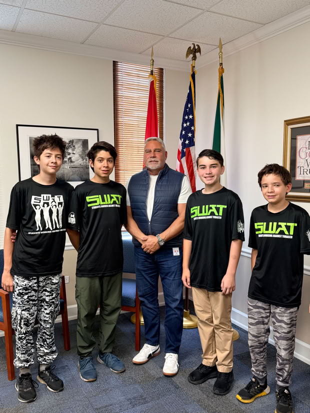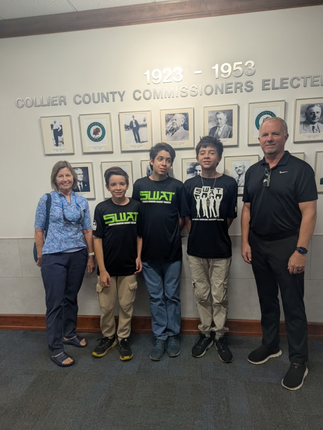 On Monday 10/27, Allie Delventhal, an FOTT director, participated in a meeting with Collier County Commissioner Burt Saunders with a group including representatives from the County Health Department, 3 children from SWAT (Students Working Against Tobacco), and Guy Blanchette, from the Tobacco Free Collier Partnership. The purpose of the meeting was to ask Mr. Saunders to endorse the creation of a county ordinance prohibiting smoking and vaping in all Collier County parks and beaches. Two of the students, Joshua and Yeremi Gutierrez gave impassioned speeches, and Mr Blanchette provided helpful information and statistics regarding the importance of an official ordinance. The 1st photo includes the Gutierrez students and Mr Blanchette with Ms. Delventhal, and the other photo is of the SWAT students with Commissioner Kowal, whom they met on 11/6. Friends of Tigertail is supportive of this initiative.
